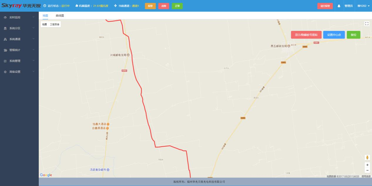 天然氣管線泄漏安全監(jiān)測系統(tǒng)采用目前先進的管道溫度系統(tǒng)監(jiān)測技術。僅用天然氣管線中的通訊光纜的一根光纖就可實現(xiàn)長達幾十公里的天然氣管道泄漏定位報警。通過基于通訊光纜的分布式光纖測溫技術,對天然氣管線進行在線溫度分布監(jiān)測,就能夠通過管道溫度異常點的探測,準確發(fā)現(xiàn)管道的泄漏點,并及時的進行報警和定位。如果天然氣管線發(fā)生泄漏,高壓氣體的體積膨脹將引起漏點附近溫度的下降,分布式光纖測溫系統(tǒng)同樣可通過溫度異常點的探測,發(fā)現(xiàn)并定位天然氣管線的泄漏點。通過對天然氣管線進行在線的分布式溫度監(jiān)測,并將系統(tǒng)設備接入管道監(jiān)測系統(tǒng)局域網(wǎng),通過網(wǎng)絡信號可將溫度信息上傳給中央服務器。可在整個天然氣管線線路發(fā)生管道泄漏以及事故初期階段,第一時間發(fā)現(xiàn)并報告預警點的具體位置、溫度變化、溫度下降走向等信息數(shù)據(jù),為天然氣管線管理部門及其它相關部門及時定位、分析可能發(fā)生的管道泄漏事故提供可靠堅實的信息獲取手段,為天然氣管線系統(tǒng)安全運行提供高效的安全保障。本系統(tǒng)具有本質(zhì)防爆、抗強電磁干擾、電絕緣性好、防雷擊、高精度、重量輕、體積小等優(yōu)點,適合在易燃、易爆等高危環(huán)境應用。設備聯(lián)網(wǎng)后,通過載入百度地圖顯示光纜所在位置地圖,并設定中心點,選定當?shù)厮谖恢茫筛鶕?jù)管道的走向在地圖上標出光纜走向圖,當發(fā)生報警時,界面會出現(xiàn)一個彈窗,顯示報警地點,報警時間等。